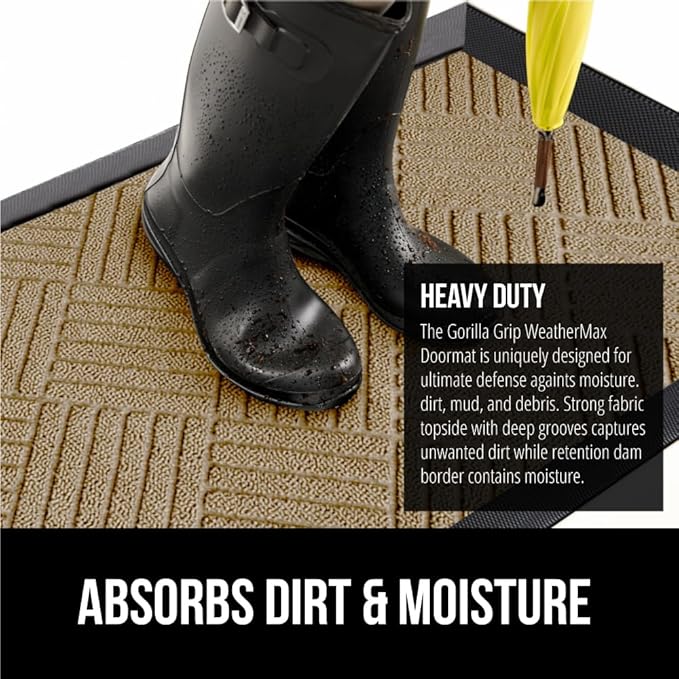 - THE ORIGINAL WEATHERMAX ALL SEASON DOORMAT: Gorilla Grip's Original WeatherMax doormat is built tough with a heavy duty, yet soft and flexible construction; deep grooves, beveled rubber border and retention dam help capture dirt, debris and moisture