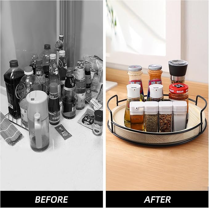 • This wooden turntable cabinet turntable saves space and optimizes space utilization, keeping your kitchen or pantry neat and organized