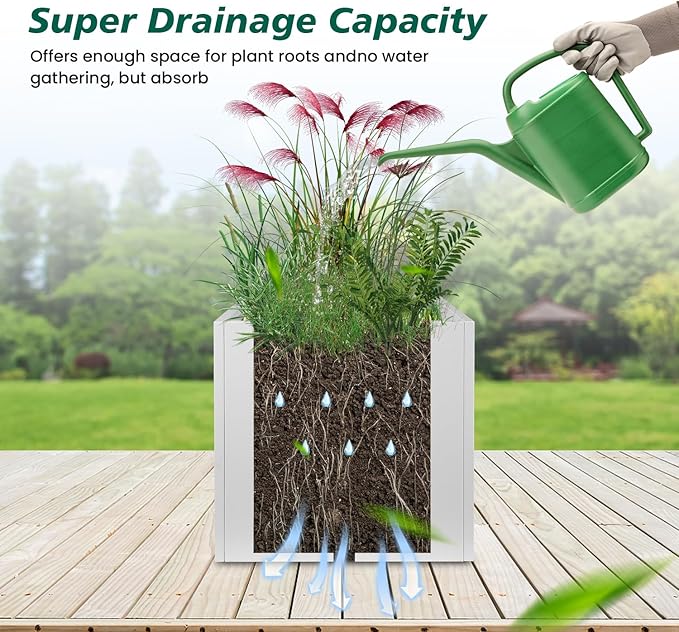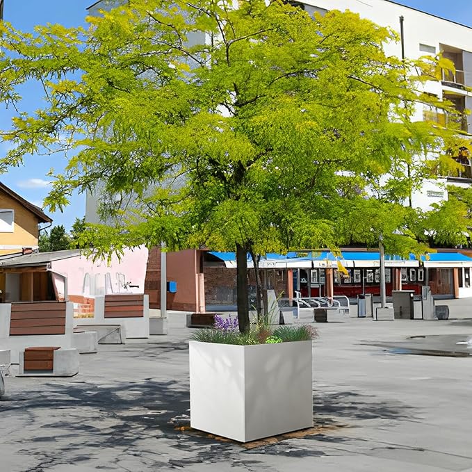• [ White Square Planter] For indoor and outdoor use, garden, yard, deck, patio, commercial and residential Tall Plant Backyard.