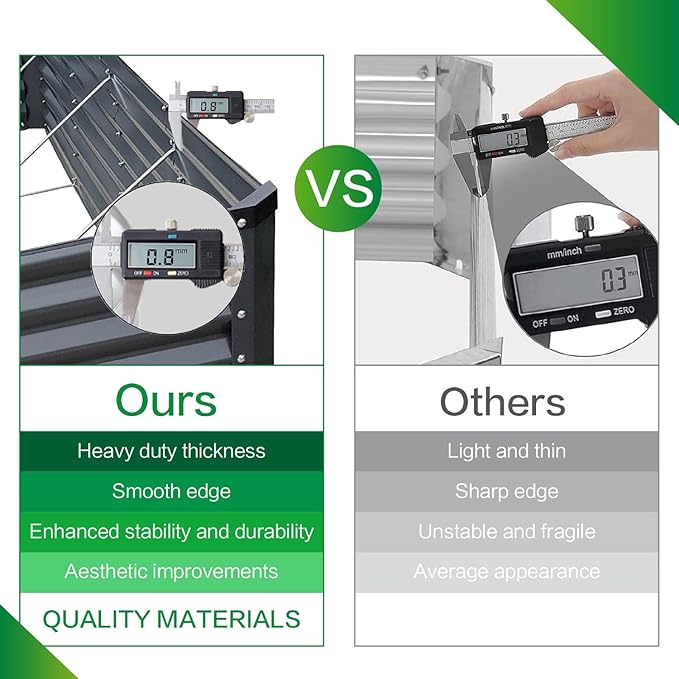 - DURABLE GALVANIZED MATERIAL: GARDMAX outdoor raised garden beds are made from 0.8mm heavy-duty galvanized material, ensuring exceptional longevity and durability. It is more resistant to high temperatures and freezes, making it very suitable for outdoor use. And this metal will survive the elements for decades, but when you're ready to replace it, the metal is entirely recyclable