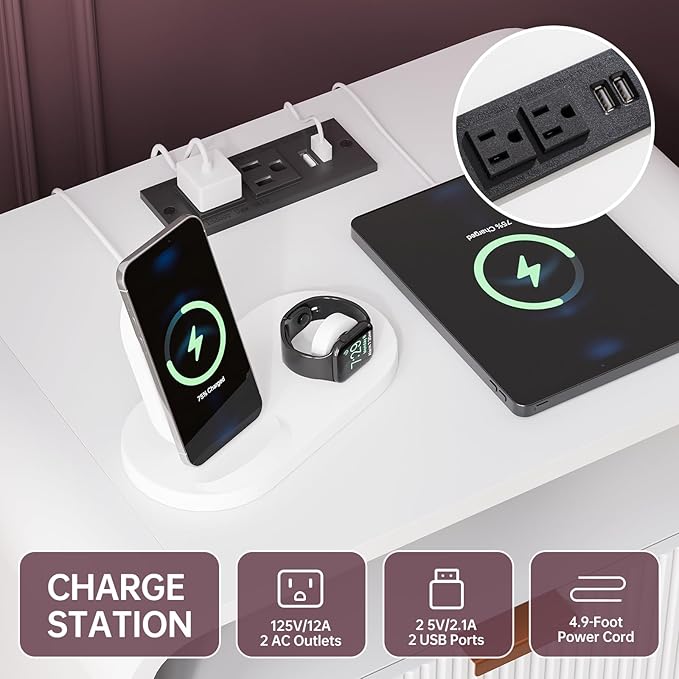 - 【Versatile Nightstand with Charging Station】Bedside Cabinet with 2 AC outlets & 2 USB ports conveniently located along the top, this nightstand has your charging needs covered. Measuring 24"W × 15.5"D × 25"H, brings both function and flair to your home organization. The top surface for staging framed photos, artful accents, and more.