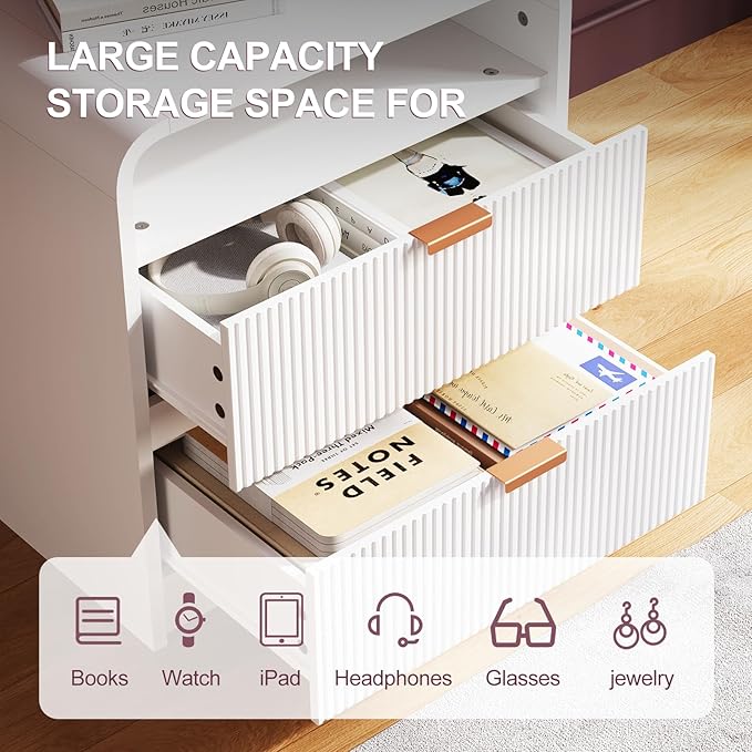 - 【Elegance Meets Chic】 Elevate your space with this nightstand, blending artful design and modern durability. Sculpted fluted details create captivating texture and depth, turning functional storage into a statement piece for any bedroom or living area.