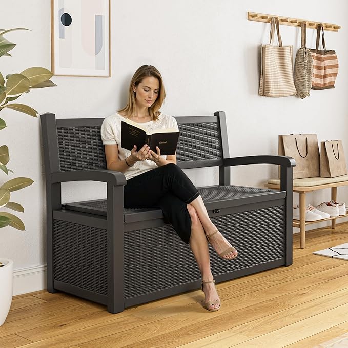 - Durable & Weather-Resistant: Crafted from weather-resistant resin, this waterproof outdoor storage bench is resistant to rust, water, and UV rays. Whether used as a deck box bench or a deck storage bench, it comes with reinforcement bars to withstand various outdoor weather conditions, ensuring long-lasting performance.