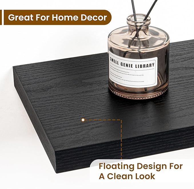 Fun Memories Floating Shelves for Wall, 32 Inch Rustic Wood Wall Mounted Shelves for Bathroom, Bedroom, Kitchen, Living Room, Deep Floating Shelves for Storage & Home Decor (Black, Set of 2)