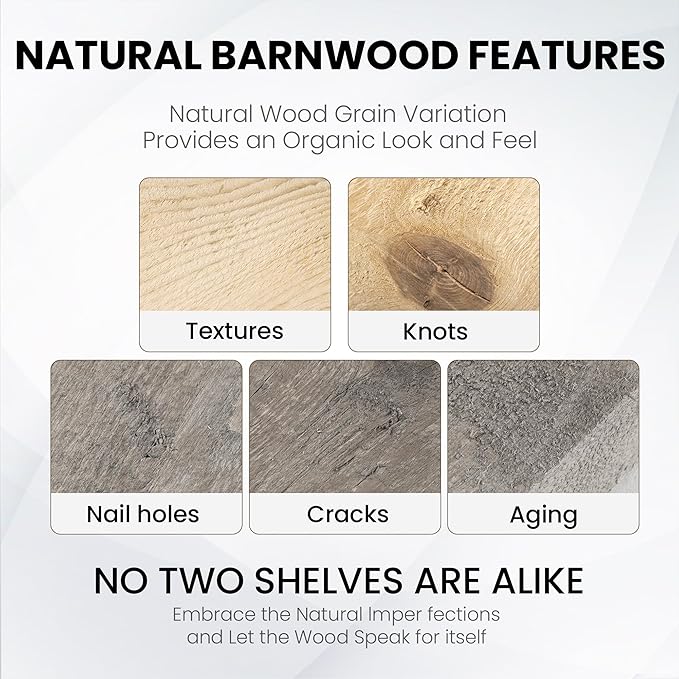 - Included Components : Rustic Reclaimed Wood Shelves