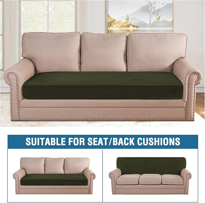 H.VERSAILTEX Velvet Stretch Individual Couch Cushion Cover Plush Cushion Slipcover for Loveseat Sofa Cushion Furniture Protector Seat Cushion Sofa Cover (1 Piece Sofa Cushion Cover, Olive)