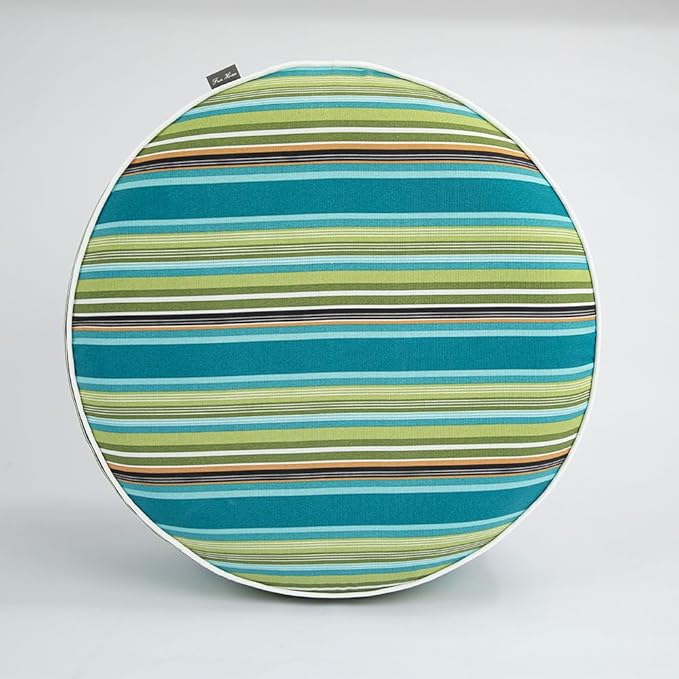 FUNHOME Inflatable Outdoor Ottoman with Air Pump,20"x9" Portable Patio Pouf,Water Resistant,Fade-Resistant,Round Blow Up Footrest Stools for Home Garden Camping Travel(Green Stripe)
