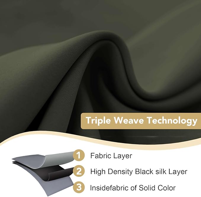 - MULTIPLE FUNCTIONS: These premium blackout curtains are made by innovative technology specially yarn. Ultra soft, super smooth and excellent silky. High performance on thermal insulated, room darkening, noise reducing, energy saving / efficiency and privacy protection