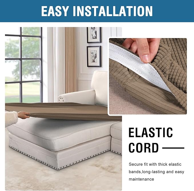 - NON SLIP: Effortless for installation (guide photos on selling page), sewn with thick elastic loops to cover the bottom edges. It is easy to install and take off, making your home more harmony, high recommended for both leather and cloth furniture