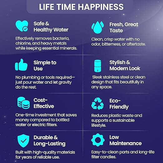 - 𝐏𝐫𝐨𝐯𝐞𝐧 𝐅𝐢𝐥𝐭𝐫𝐚𝐭𝐢𝐨𝐧 𝐓𝐞𝐜𝐡𝐧𝐨𝐥𝐨𝐠𝐲 - Phoenix Gravity Water Filters are independently tested to ensure over 99.9% reduction of contaminants such as chlorine and heavy metals, providing you with pure, safe water.