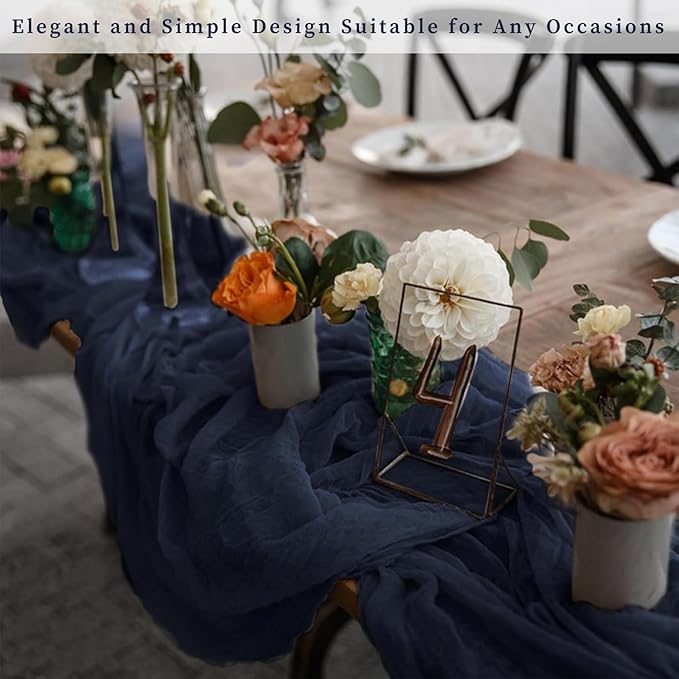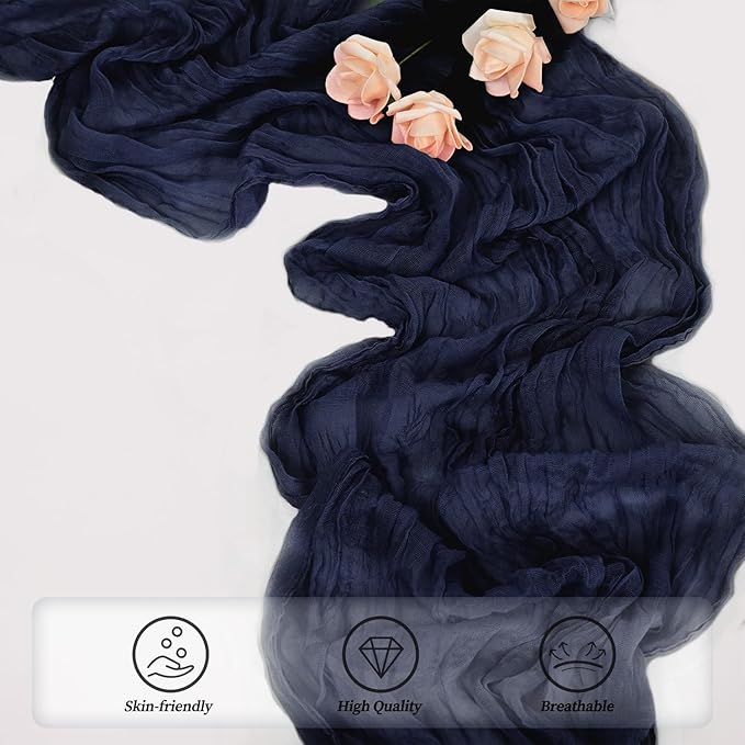 - Cheesecloth Table Runner Size: You will receive 6 navy blue cheesecloth tablerunner, each measuring 20 x 120 inches. The quantity is sufficient for you to decorate various romantic occasions. It can decorate most shaped tables, such as rectangular tables, round tables, and cocktail tables. It is long enough to decorate a large table and be placed perfectly and elegantly on the tabletop, adding a romantic atmosphere to your occasion.