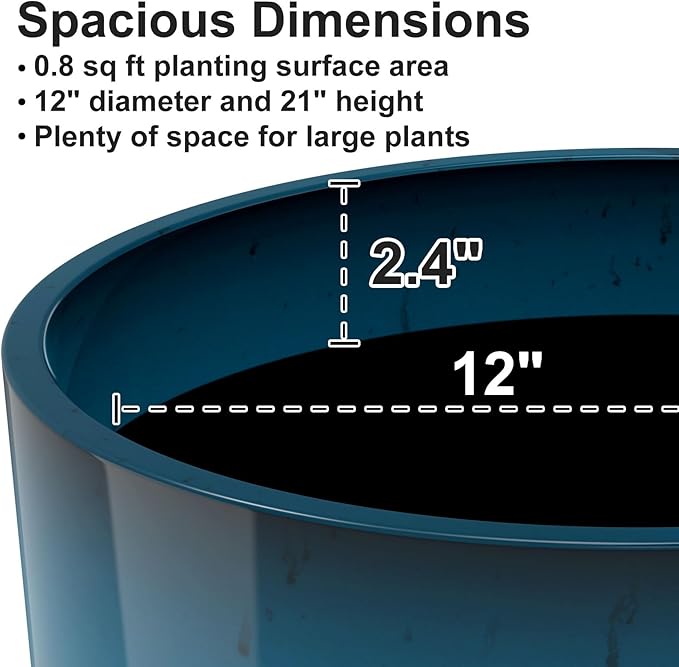 GameXcel Tall Flower Pot Indoor - Outdoor Plant Pot - Turquoise Glossy Planter - Elegant Stone Imitation - 12" Diameter 21" Tall with Drainage Holes and Saucer 2Pack