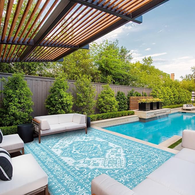 - Safe for Indoors & Outdoors: Crafted from eco-friendly materials, this indoor outdoor carpet protects floors and won't damage grassโideal for gardens, poolside areas, or indoor living, adding style and practicality wherever you need it
