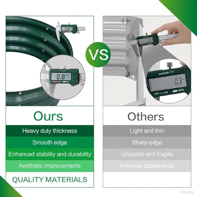 - DURABLE GALVANIZED MATERIAL: GARDMAX outdoor raised garden beds are made from 0.8mm heavy-duty galvanized material, ensuring exceptional longevity and durability. It is more resistant to high temperatures and freezes, making it very suitable for outdoor use. And this metal will survive the elements for decades, but when you're ready to replace it, the metal is entirely recyclable