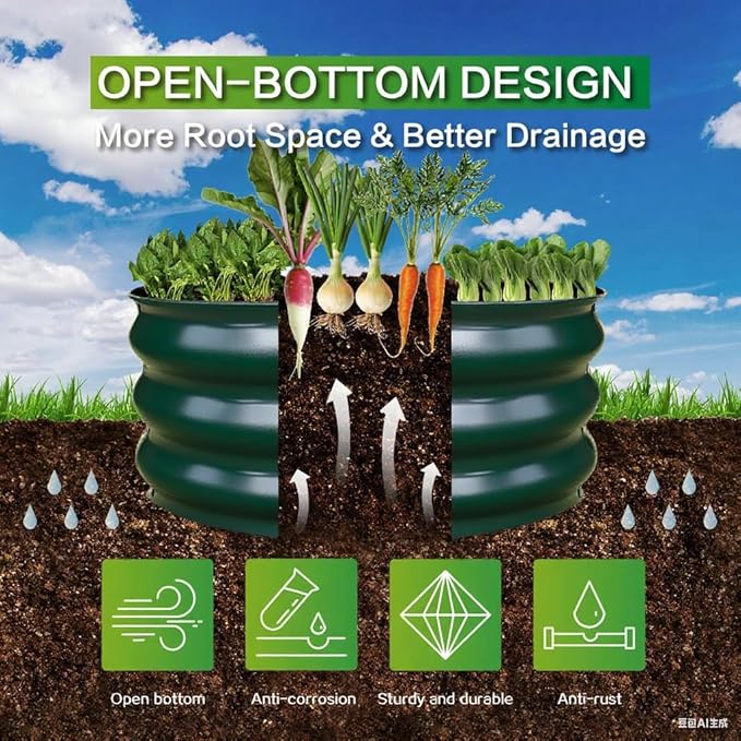 - OPEN BOTTOM DESIGN: GARDMAX galvanized planter raised beds are designed with an open bottom, which is good for drainage to protect plants, plant roots won't be sick from excessive water. It also keep weeds away from soil and keep out chicken, small pets like puppies, rabbits to protect your plants