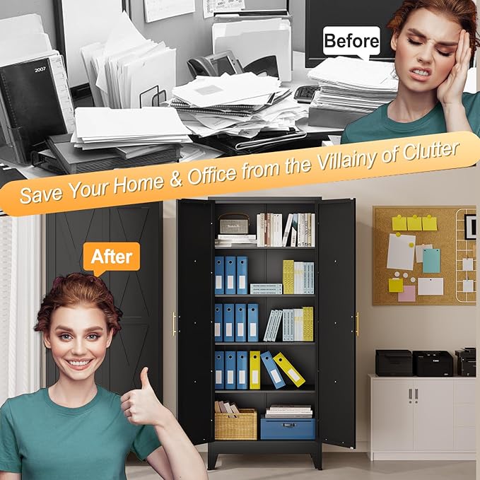 - 🌽【Discover Multi-Functional Storage Solutions】Our storage cabinets are generously sized to unlock the potential of your space.4 adjustable shelves can easily accommodate your storage needs. This cabinet not only organizes kitchen items, but also easily converts into a bathroom cabinet, filing cabinet, and bookcase to enhance the aesthetics of your home. Impeccable organization will refresh every corner of your home.