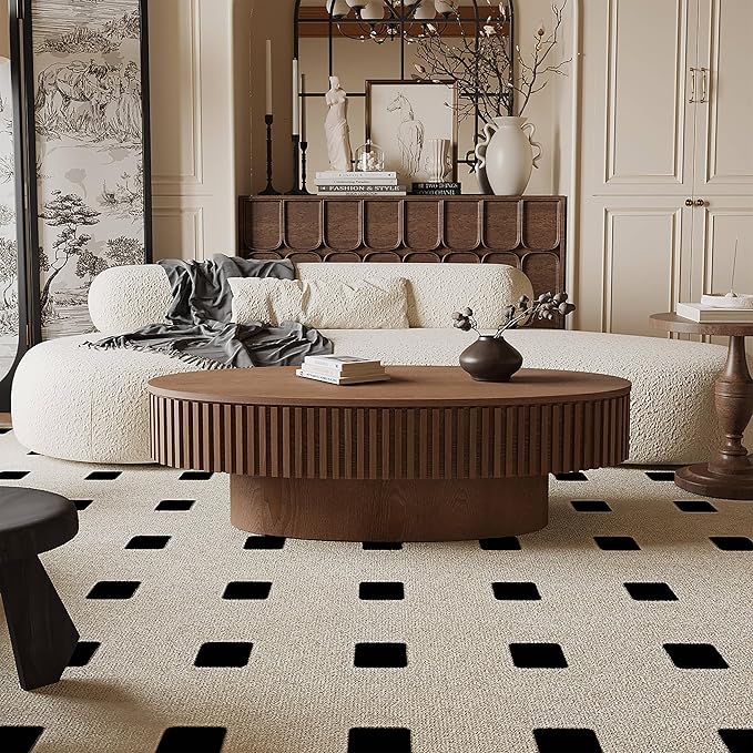 - ☕Sturdy and Durable Oval Wood Coffee Table: Made of high-quality MDF, it has excellent stability and durability. The solid wood veneer not only makes this coffee table more durable, but also can be kept as new after regular cleaning,round coffee table load capacity:table top - 200lbs, interior - 100lbs.