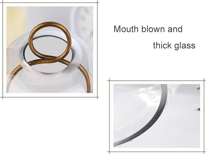 6" & 4" Versatile Modern Metal Hurricane Lantern in Set of 2 with Handmade Sturdy Glass Dome for Pillar Candle & Plants (Brass, 4"x7.5" &6.3"x11.2")
