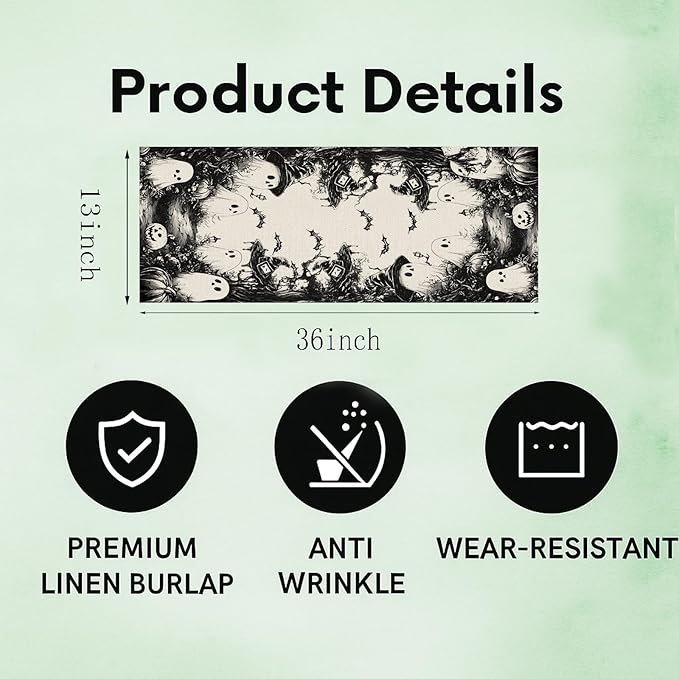GPGHE Halloween Table Runner Black Ghost Holiday Burlap Table Decoration Indoor Outdoor Home Decor Party Supply 13 x 36 Inch