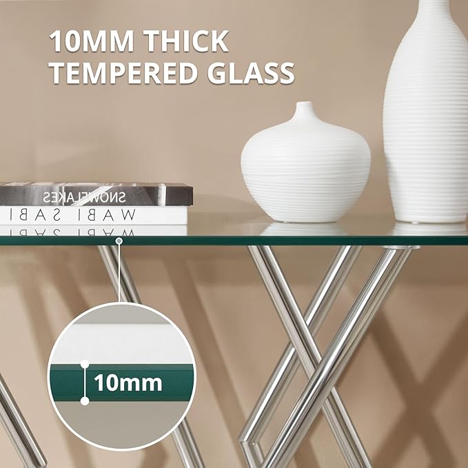 - 【Multi-Functional for Home & Office】 -Beyond its role as a chic entryway table, it serves as a sofa table for living rooms, a buffet table during gatherings, or a minimalist office desk. The neutral silver-and-glass palette blends with any color scheme, from bold accent walls to neutral Scandinavian interiors. In addition, the easy-to-clean surface makes it pet- and kid-friendly.