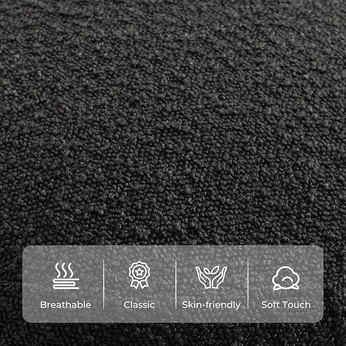 Furniliving Modern Round Ottoman, Soft Bedroom Ottoman Footstool Round Ottomans Stool for Living Room, Bedroom, Makeup Room, Black, Boucle